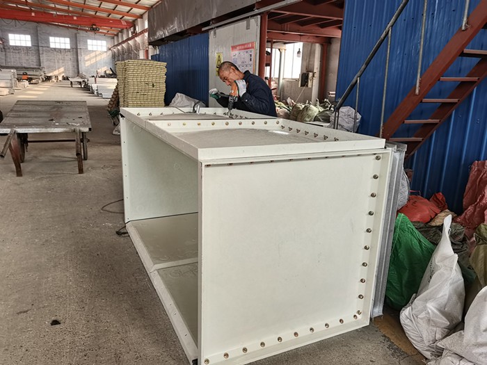 玻璃鋼模壓水箱是由SMC模壓板塊、密封材料、金屬結構件及配管系統現場組裝而成。給設計和施工帶來很大方便。一般水箱按標準設計,水箱需要設計。可根據用戶需要組裝0.125-1500立方米的水箱。若原有水箱需要換,不需要改造房屋,適應性很強。研制的定型產品密封帶,該密封帶、耐水、彈性大、變型小,緊固密封。水箱整體強度高,無滲漏,無變形,保養、檢修方便。 玻璃鋼水箱是目前采用的新型水箱。由整體SMC水箱板拼裝而成。其特點是采用食品樹脂,因此水質好;具有強度高,重量輕,耐腐蝕,外型美觀,使用時間長,保養管理方便等特點。