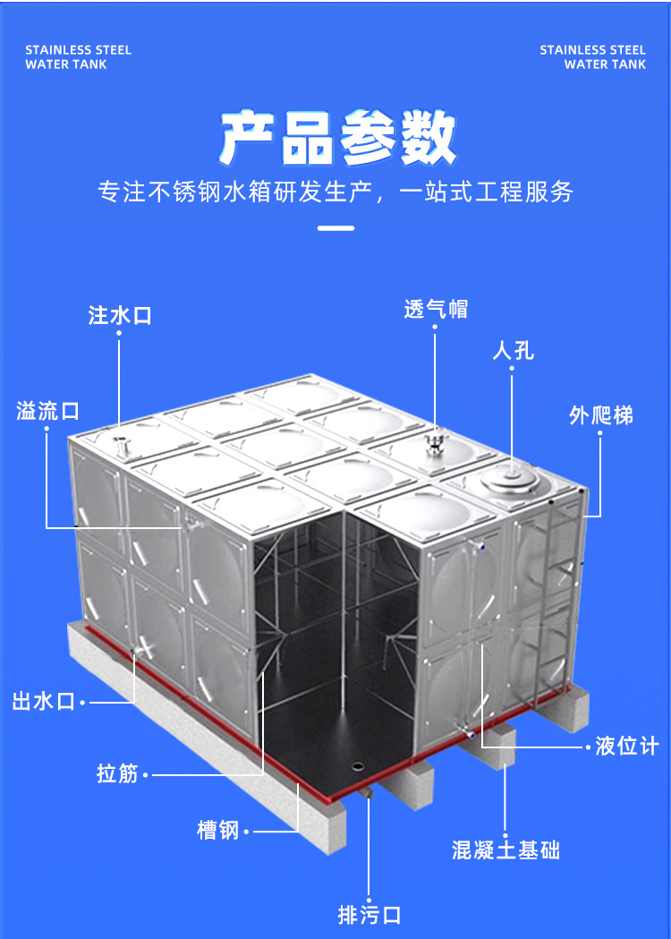 2,進水管一般從側壁連接,也可從底部或頂部連接。 當水箱利用管網壓力進水時,進水管水流出口需要同步安裝水位控制閥和浮動球形閥門。每一個控制閥都對應有一個閥門的檢修口,當水箱利用外加的壓力進水和水位自動升降的時候,進水管處可以不安裝控制閥門。