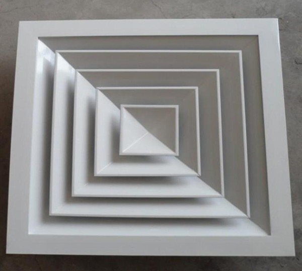 方形散流器先調(diào)挺直,表面光潔,葉片角度為固定式,葉片采用夾角片沖壓連接,整個(gè)葉片與邊框采用分離式結(jié)構(gòu),以方便安裝與調(diào)節(jié)。設(shè)計(jì)時(shí)可根據(jù)房間造型不同,選用不同出風(fēng)方向的散流器,可與調(diào)節(jié)閥配套使用鋁合金表面經(jīng)陽極氧化處理,也可根據(jù)用戶要求進(jìn)行靜電噴塑處理。